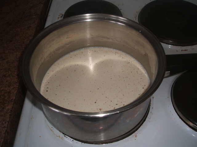 Step One: Heat the milk, nutmeg, salt and pepper. |